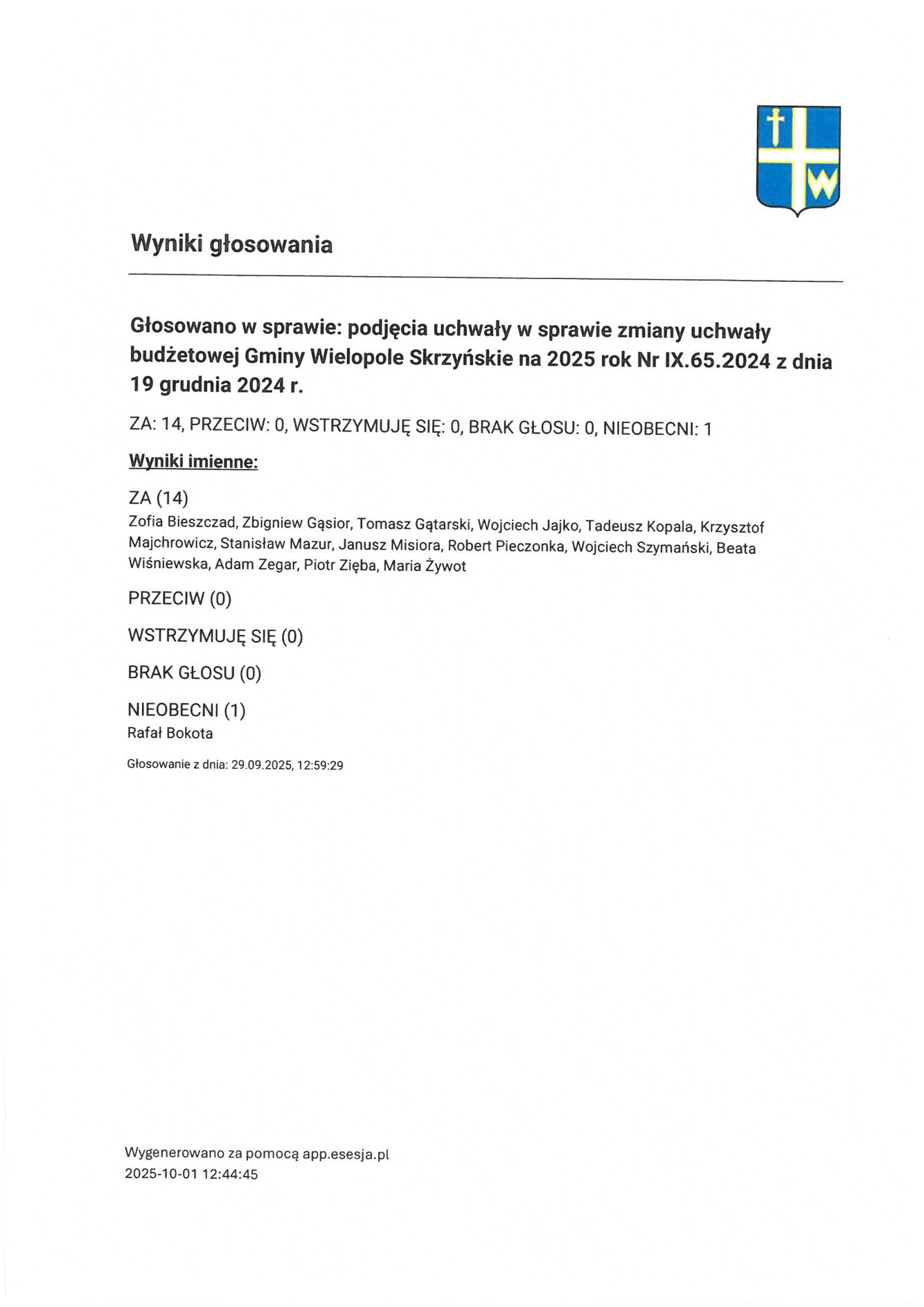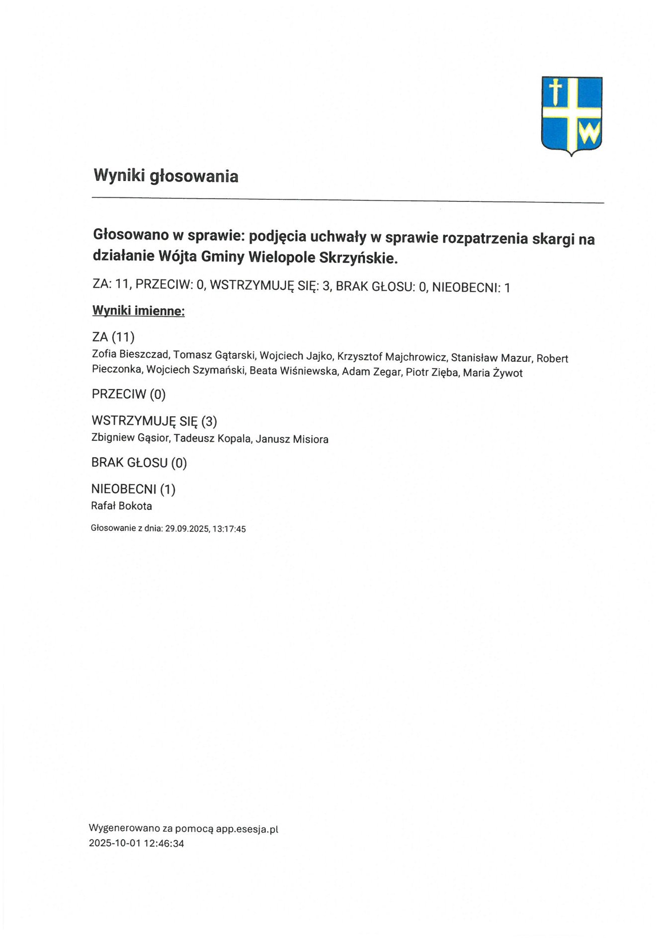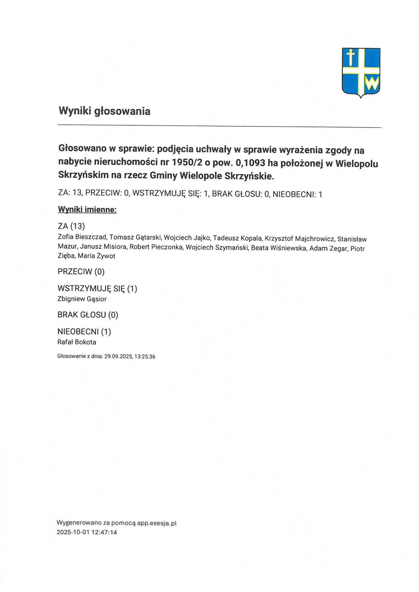 Środa 1 października 2025 Imienny wykaz głosowań radnych Strona Główna/Informator/InformacjeImienny wykaz głosowań radnychImienny wykaz głosowań radnych