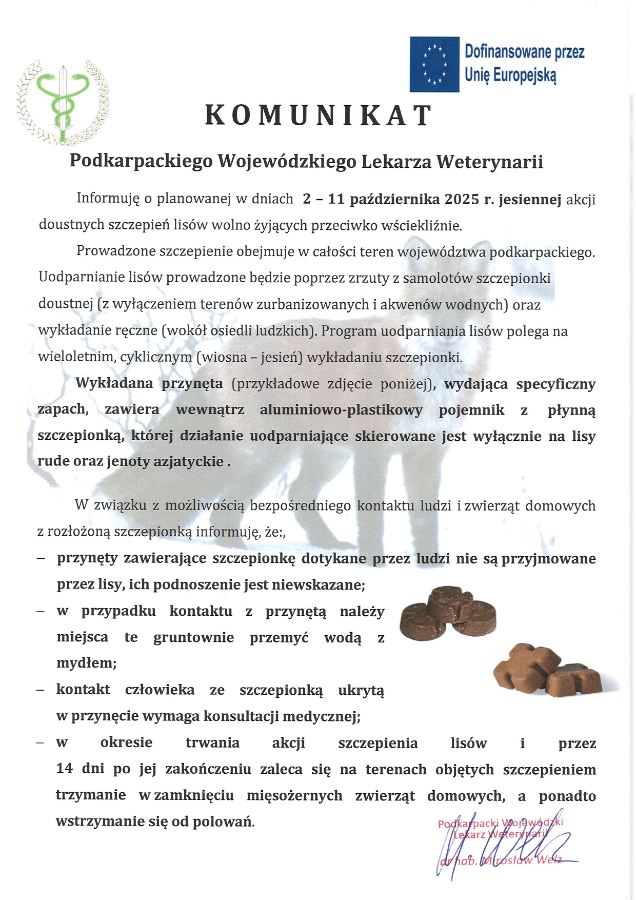 Czwartek 25 września 2025 KOMUNIKAТ Dofinansowane przez Unię Europejską Podkarpackiego Wojewódzkiego Lekarza Weterynarii Strona Główna/Biuletyn Informacji Publicznej/Gospodarka Komunalna
